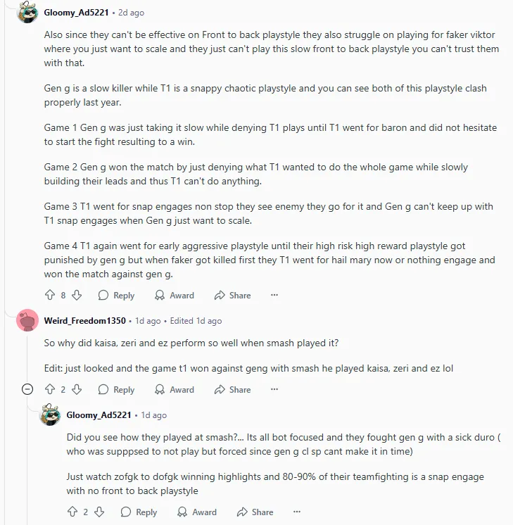 T1更习惯打上路,而不是下路。他们上次真正围绕下路打还是在2023年春季赛,当时他们下路简直是碾压。